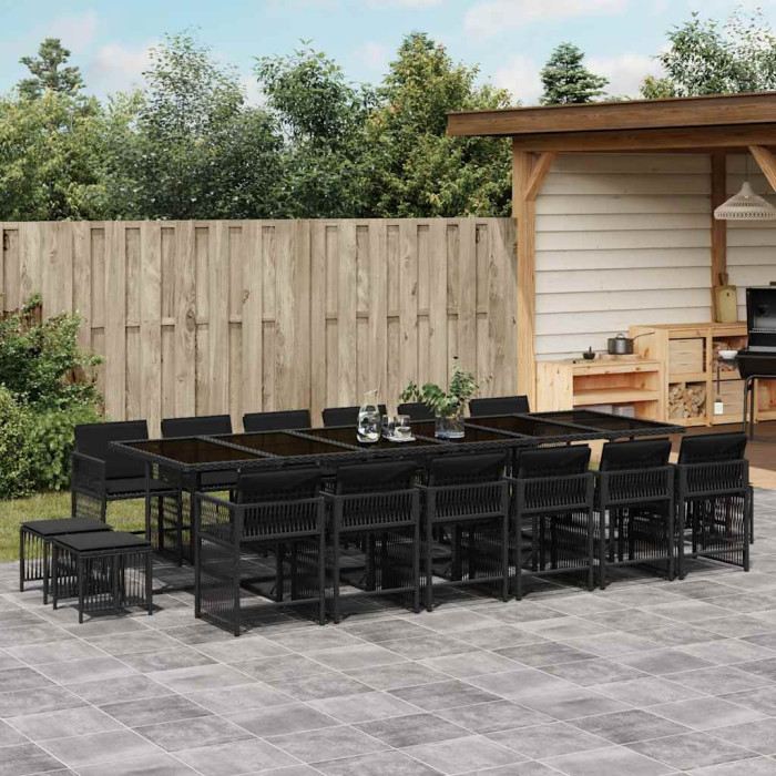 17-osaline aia söögimööbli komplekt patjadega, must, polürotang