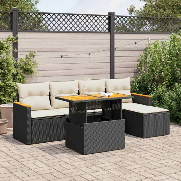 6-osaline aiadiivani komplekt patjadega, must, rotang/akaatsia