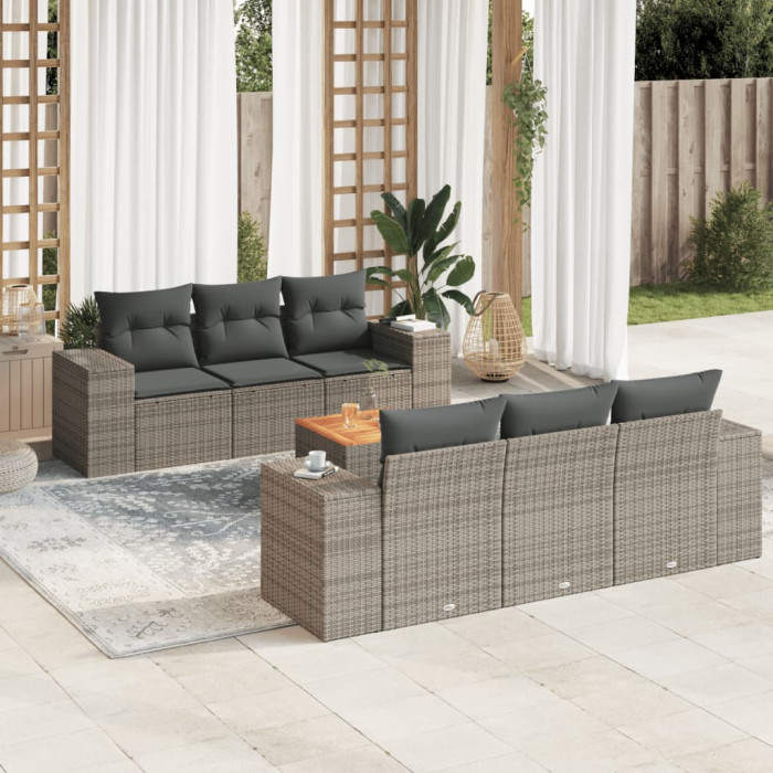 7-osaline aiadiivani komplekt patjadega, hall, polürotang