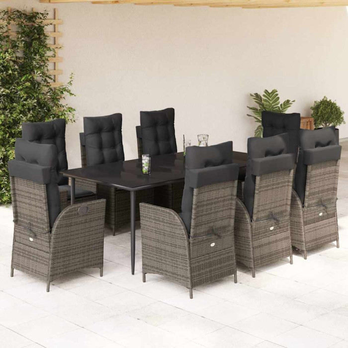 9-osaline aiamööbli komplekt patjadega, hall, polürotang