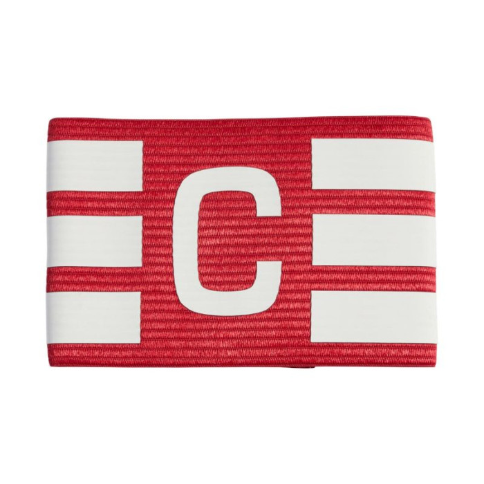 adidas Tiro L AB Captain's Armband Red and White KD4250. This adidas captain's armband lets you show who leads your team. Stripes, logo, and the letter C. Hook-and-loop closure. Additional elastic loop. This model is made from a series of recycled materials. Material: 82% recycled polyester, 18% elastane