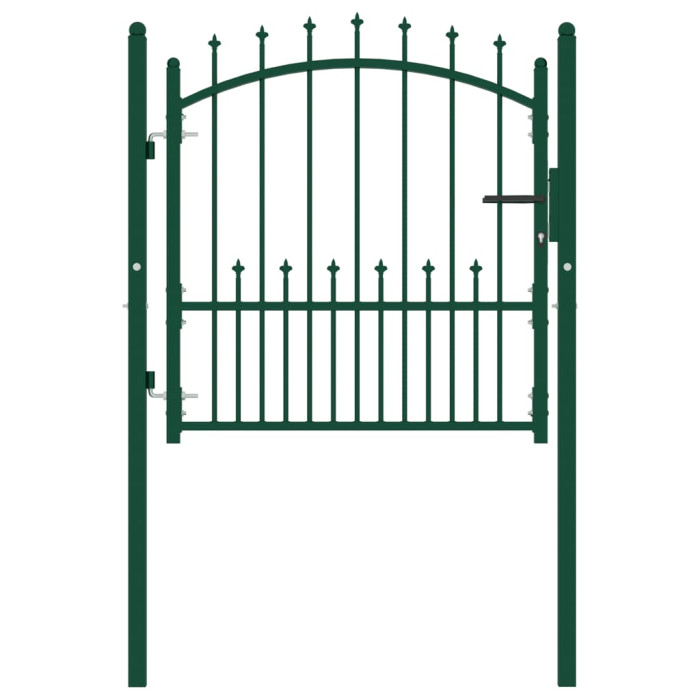 Tugevast terasest valmistatud aiavärav on tugeva konstruktsiooniga ning pulbervärvitud rooste ja korrosiooni vastu. Vertikaalsete ogadega varraste ja tugeva horisontaalse toega aiavärav tagab hea turvalisuse. Kaarjas pealiskujundus lisab elegantsi. Sellel on kaks toekat ja tugevat hinge hõlpsaks paigaldamiseks ja kolme sobiva võtmega lukustussüsteem kuulub samuti komplekti.