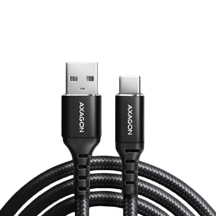 Axagon Data and charging USB 2.0 cable length 1.5 m. 3A. Black braided.
