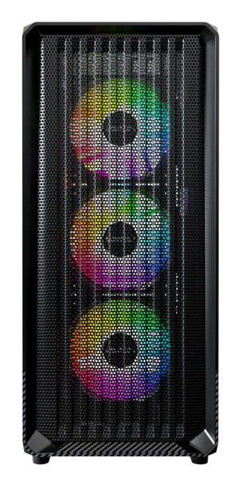 Передняя панель с карбоновым узором придает корпусу выразительный и стильный вид. Лаконичные линии, дополненные эффектной ARGB-подсветкой, создают впечатление современного и премиального продукта, который гармонично дополнит любое игровое или рабочее пространство.