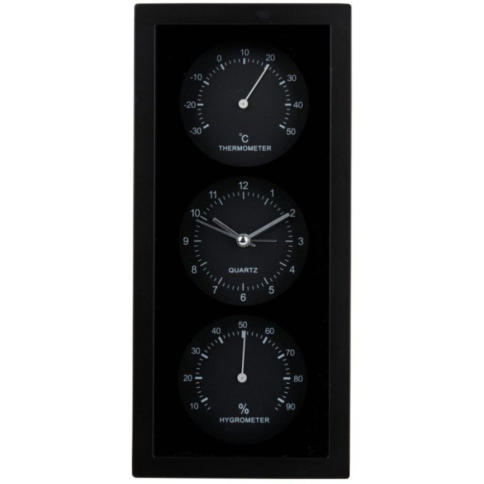 CLOCK ALARM THERMOMETER HYGROMETER 26X5x12CM ARTICASA BLACK
