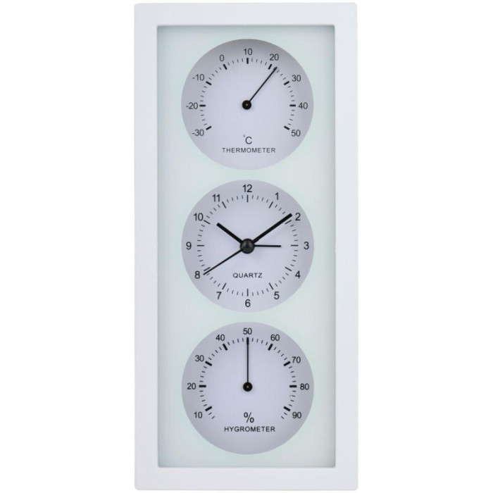 CLOCK ALARM THERMOMETER HYGROMETER 26X5x12CM ARTICASA WHITE