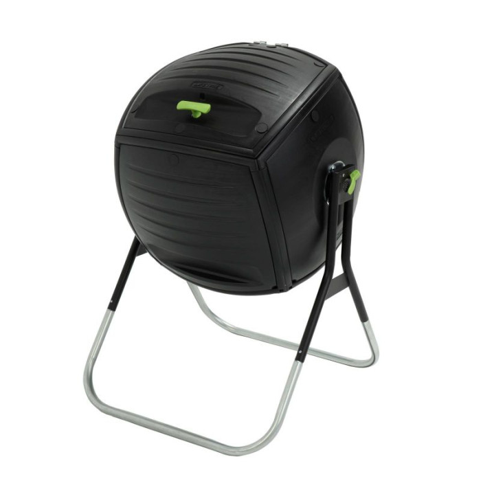 Made of durable, high-density polyethylene, it features a UV-protective coating and black panels to absorb and retain heat. For added convenience, it features an extra-large, removable lid and a spring-loaded pin that prevents the composter from rotating while filling. Designed for organic waste, it produces a useful and affordable organic soil conditioner and fertilizer.