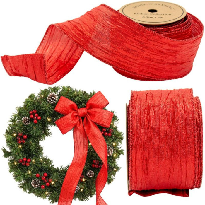 Add depth and style to your decorations! Choose a crimped ribbon in vibrant red to create unique gifts, centerpieces, and decorations straight from a decorator's studio.
