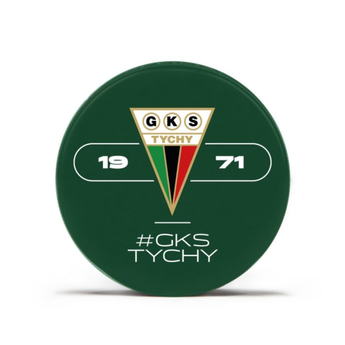 GKS Tychy #1971 Puck Collection: Sporting tradition at its finest! The GKS Tychy #1971 puck is a unique gadget for fans of the legendary club from Tychy. It combines classic hockey character with modern design, paying tribute to the history and passion that drives the team. Key features: Official club design: The front features the GKS Tychy crest in club colors and the symbolic inscription #GKSTYCHY with the date 1971 – referencing the club's rich history and tradition. High-quality workmanship: The puck is made of durable, professional rubber, ideal for both play and display. Standard weight: The puck weighs between 156 and 170 g, in accordance with the official parameters used in hockey competitions. Fan-centric: The green background and modern typography give it a dynamic look, perfect for any GKS Tychy fan. The GKS Tychy #1971 puck isn't just sports equipment—it's a symbol of pride, history, and commitment to the club's colors. Perfect for collectors, players, and anyone who lives and breathes hockey!