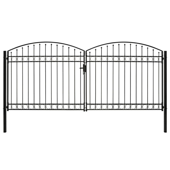 kahepoolne kumera ülaosaga aiavärav, teras, 400 x 200 cm, must