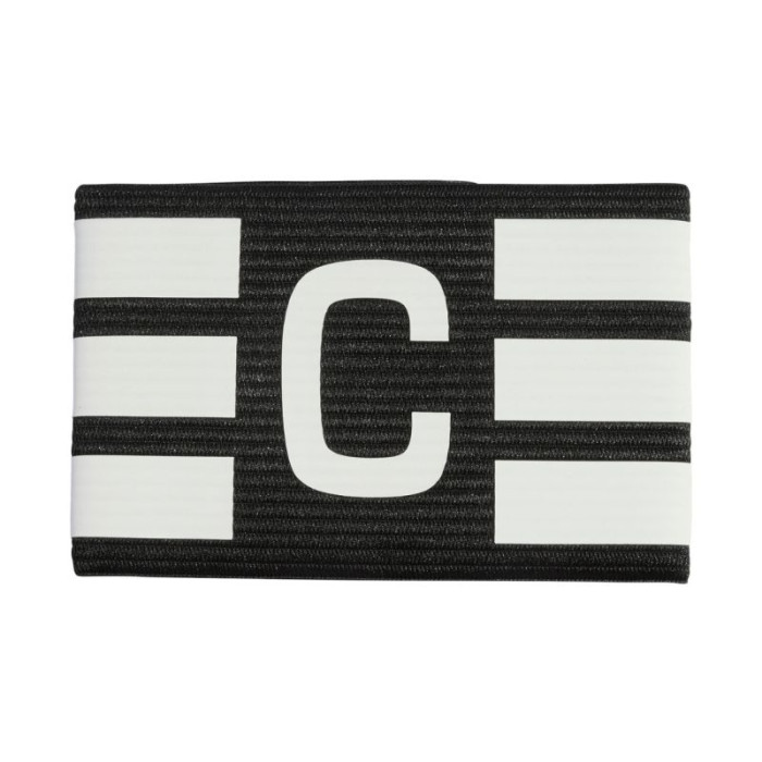 adidas Tiro L AB Captain's Armband Black and White KA7685. This adidas captain's armband lets you show who's in charge of your team. Stripes, logo, and the letter C. Hook-and-loop closure. Additional elastic loop. This model is made from a series of recycled materials. Material: 82% recycled polyester, 18% elastane