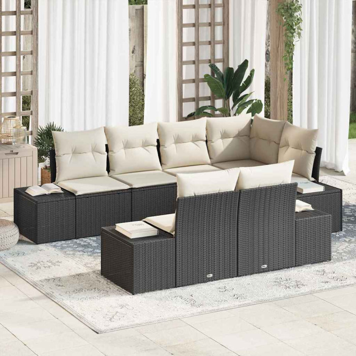 Представляем вашему вниманию 7-ми местный садовый диванный комплект из черного полиротанга с подушками – идеальное решение для создания уютной и стильной зоны отдыха на открытом воздухе. Этот комплект станет прекрасным местом для встреч с друзьями, семейных обедов на свежем воздухе или просто для расслабления под лучами солнца.