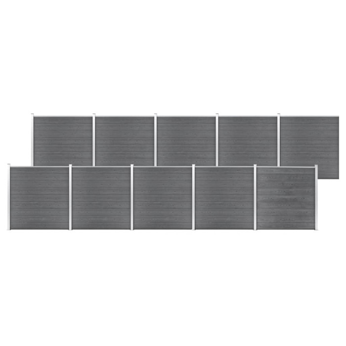 WPC-aiapaneeli ühel küljel on puidumuster ja teisel küljel tavaline muster, seega saate valida sobivaima disaini. Puidu ja plasti segust paneel ei vaja täiendavat töötlemist, näiteks õlitamist ega värvimist. See on väga tugev ja peab vastu kõdunemisele ning roostele. Tänu alumiiniumist pealmisele profiilile saab aiaplaadid tihedalt üksteise külge kinnitada, mis suurendab nende jäikust ja vastupidavust löökidele. Modulaarsüsteemiga aiapaneele on lihtne paigaldada ja see võimaldab teil mugavalt aeda pikendada. Postidel on kolm ava, mistõttu saate aia erinevalt kokku panna, näiteks sirgelt (180 kraadi), täisnurga all (90 kraadi) või T-kujuliselt. Komplekti kuulub 90 WPC-plaati, 11 posti ja 10 alumiiniumriba.