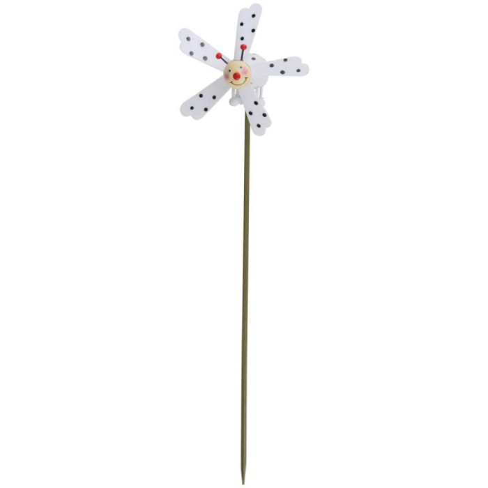 DECORATIVE LADYBUG ON A PIKE WITH A PINWHEEL, WHITE, is the perfect choice for gardening and decoration enthusiasts who want to add a bit of magic and color to their surroundings.