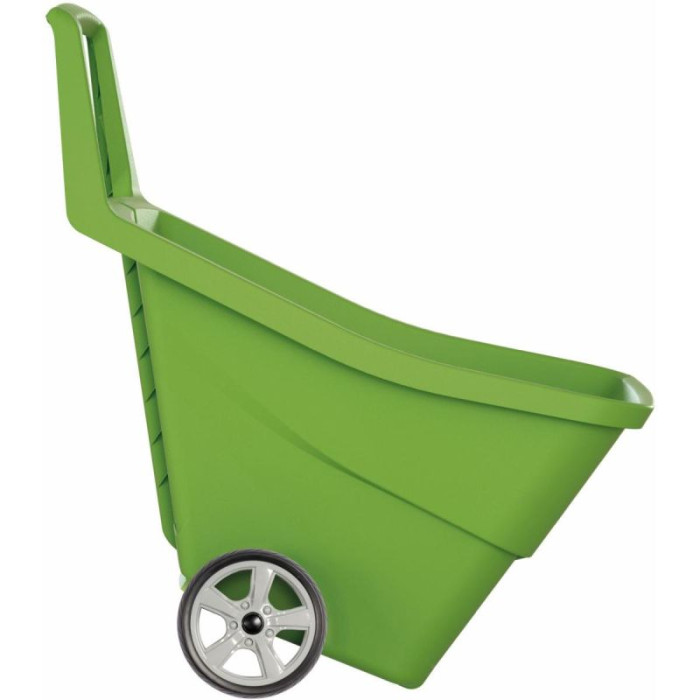 The lightweight and functional LOAD AND GO III 95 L GARDEN WHEELBAR is ideal for a variety of tasks in your garden or allotment. It features a comfortable, wide handle for easy transport, and a slight forward tilt when stationary makes it easy to unload items such as leaves or soil. The wheelbarrow's construction is made of lightweight material resistant to mechanical damage, rust, and changing weather conditions. You can use it to transport a variety of items, such as garbage, branches, leaves, soil, plants, or garden tools. Two strong and durable self-assembly wheels make transporting the wheelbarrow easy. A distinctive recess on the wheelbarrow's interior wall allows you to comfortably rest a rake or shovel. You can easily store it in your garage or utility room.