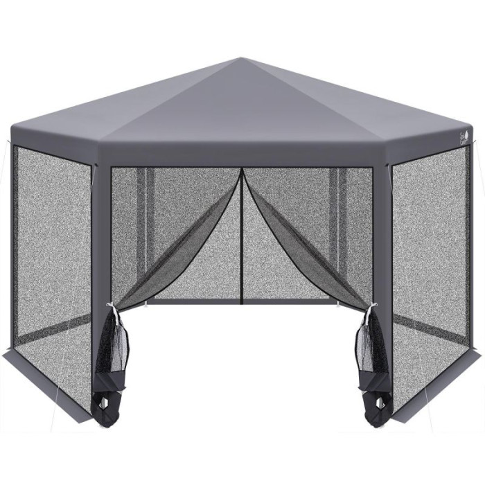 HEXAGONAL GARDEN PAVILION 2x2x2x2.5M WITH MOSQUITO NET, GRAY