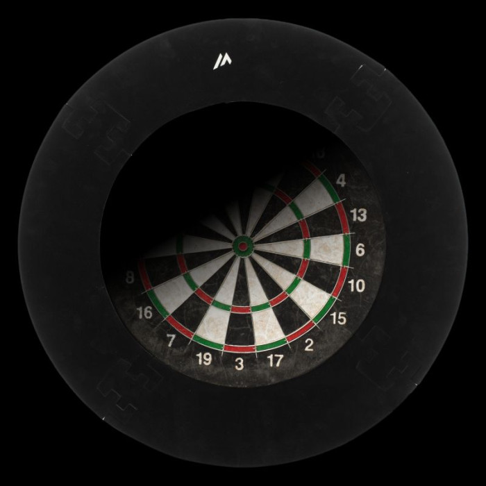 FOLDABLE DART BOARD GUARD DIAMETER: 45 cm THICKNESS: 2.7 cm WEIGHT: 400 g MATERIAL COMPOSITION: EVA FOAM SPECIFICATIONS: - FLOCK-COVERED SURFACE