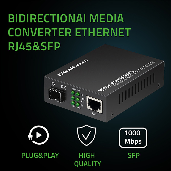 Медиаконвертер Qoltec 1000 Мбит/с | RJ45 на SFP