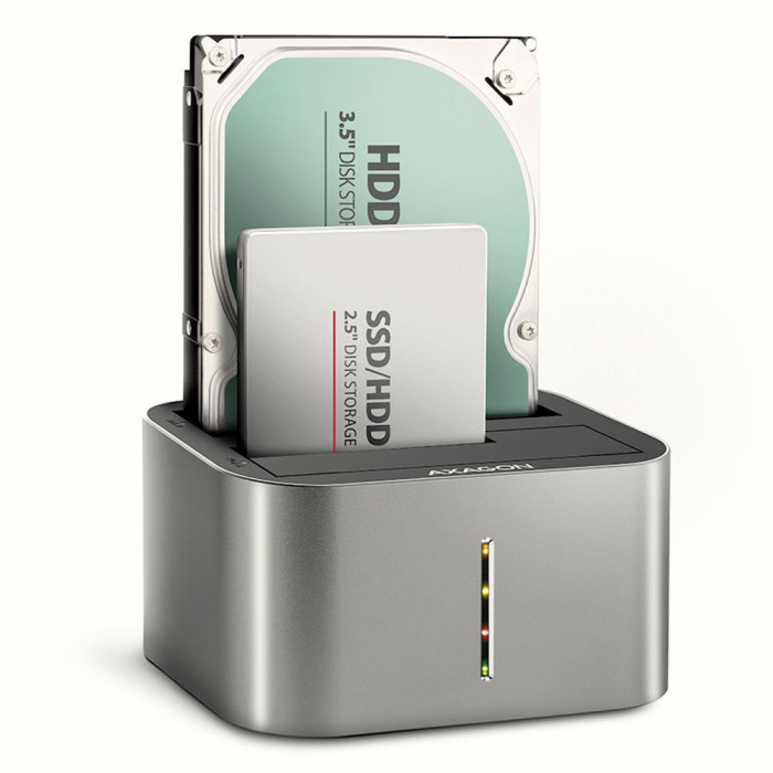 Помимо клонирования, AXAGON ADSA-DC — это мощная док-станция для повседневной работы. Возможность одновременного подключения двух накопителей открывает массу сценариев: быстрый перенос файлов между дисками, работа с архивами на одном HDD и проектами на другом SSD, или просто расширение дискового пространства вашего ноутбука.