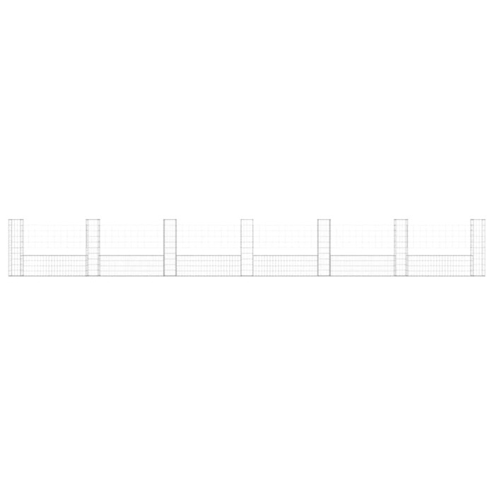 Размеры габионной корзины (740x20x100 см) позволяют создавать как небольшие декоративные элементы, так и масштабные подпорные стены. U-образная форма обеспечивает дополнительную устойчивость конструкции. В комплект входят 7 столбов для надежной фиксации габиона в грунте.
