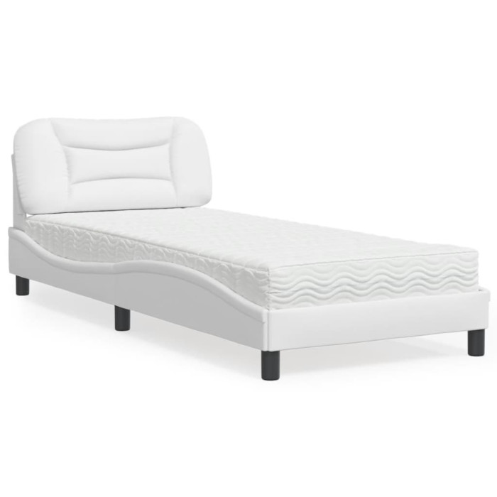 кровать с матрасом, белая, 90x190 см, искусственная кожа