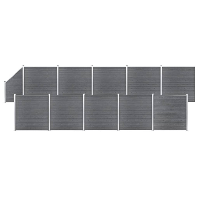WPC-aiapaneeli ühel küljel on puidumuster ja teisel küljel tavaline muster, seega saate valida sobivaima disaini. Puidu ja plasti segust paneel ei vaja täiendavat töötlemist, näiteks õlitamist ega värvimist. See on väga tugev ja peab vastu kõdunemisele ning roostele. Tänu alumiiniumist pealmisele profiilile saab aiaplaadid tihedalt üksteise külge kinnitada, mis suurendab nende jäikust ja vastupidavust löökidele. Modulaarsüsteemiga aiapaneele on lihtne paigaldada ja see võimaldab teil mugavalt aeda pikendada. Postidel on kolm ava, mistõttu saate aia erinevalt kokku panna, näiteks sirgelt (180 kraadi), täisnurga all (90 kraadi) või T-kujuliselt. Komplekti kuulub 99 WPC-plaati, 12 posti ja 11 alumiiniumriba.