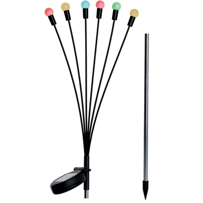 SOLAR LAMP DANCING IN THE WIND COLORFUL BALLS 6 LED 72CM is an original GLOWING COLORFUL GLOWBUGS and a practical light source that will work especially well outdoors.