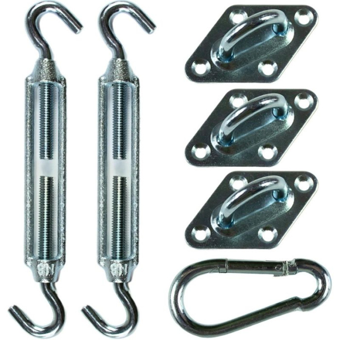 The SUN SAIL MOUNTING KIT is a proven way to securely and stably hang a shade sail in your garden, on your terrace, or balcony. Thanks to its well-thought-out configuration (brackets, snap hooks, and turnbuckles), installation is simple, quick, and do-it-yourself. It's a reliable solution for anyone who wants to enjoy shade without compromise or makeshift solutions.