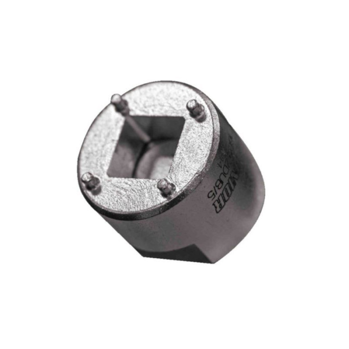 Flat surfaces on the outside diameter of the tool allow the tool to be mounted in a vice or used with a 24mm open-end wrench.