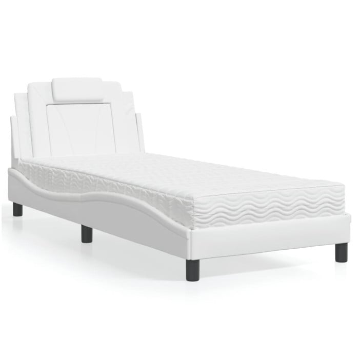voodi Viana koos madratsiga, valge, 90x190 cm, kunstnahk